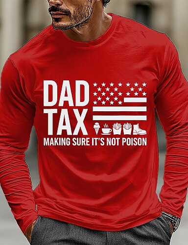 Camiseta masculina engraçada "Imposto do Pai" - Garantindo que não seja veneno - Manga longa - Estampa com a bandeira americana - Presente original para o Dia dos Pais - Ideal para pais e maridos -