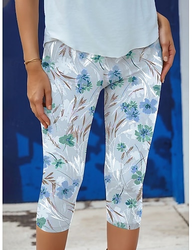 Mulheres Calças Capri chinês Leggings Férias Moda Roupa de rua Capris Cintura Alta Floral Gráfico Conforto Macio Confortável Com Stretch Diário Ao ar livre Férias Azul Roxo Verde Verão Primavera