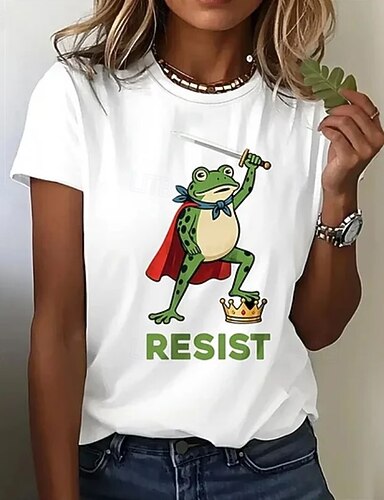 Mulheres Camiseta Imprimir Gráfico Animal Letra à moda Clássico Casual Manga Curta Decote V Tops regulares Casual Diário Branco Vermelho Verde Verão Primavera