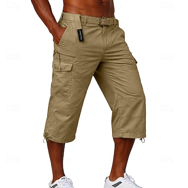 Homens Bermuda Cargo calções capri Calças Capri Shorts de Trilha Cintura elástica Bolso multi Com cinto Tecido Conforto Respirável Comprimento da panturrilha Diário Esportes Streetwear à moda Casual