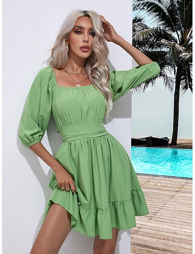 Dia dos Namorados Mulheres Normal Minivestido Vestidos Boho Chic Vestido A Line Boêmia à moda Clássico Manga lanterna Férias Festa Diário Forma Assenta Tecido Sem Manga Decote Quadrado Preto Branco