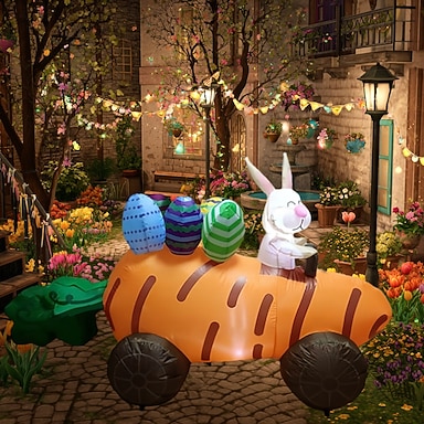 Decoração inflável de Páscoa com luzes LED, 1,75 m/5,74 pés, coelho, ovo de Páscoa, cenoura, carro, para uso interno/externo, pátio, jardim, gramado, festa, atmosfera festiva, adereços decorativos com luzes.