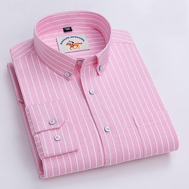 Homens Camisa Social Saia camisa de botão Riscas Casamento Festa Preto Rosa Azul Azul Céu Claro Manga Longa Lapela Primavera & Outono Roupa Bolso frontal