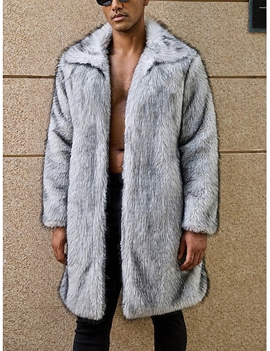 Homens Jaqueta de Inverno Casaco de pele falsa Férias Diário Térmico / Quente Tosão Outono Inverno Tecido Moda Roupa de rua Lapela Longo Preto Branco Amarelo Camelo Marron Casaco