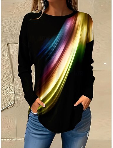 Mulheres Camiseta Imprimir Floral Gráfico Abstrato Moda Casual Manga Longa Gola Redonda Decote Redondo Tops regulares Diário Final de semana Azul Preto Vermelho Verde Verão Primavera Outono