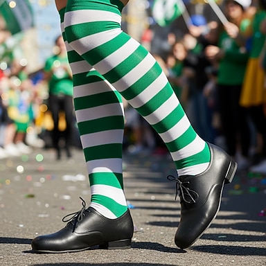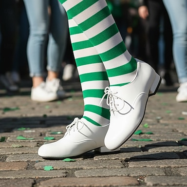 Sapatos de salto alto femininos verdes com cadarço e blocos de cor – calçados estilosos de inspiração vintage para as comemorações do Dia de São Patrício.