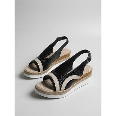 Sandálias espadrille femininas com salto plataforma – modelo slingback de bico aberto, com sola trançada, estilo casual chique para férias na ilha, viagens à praia e resorts.