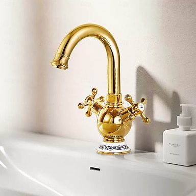 Torneira para lavatório, torneira para lavatório, torneira para banheiro em latão com design de golfinho, torneira para pia de 5 furos, torneira para água quente e fria.