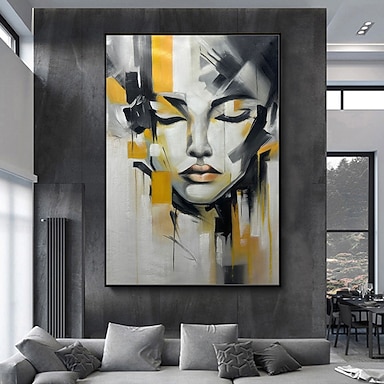 Pintura a óleo pintada à mão arte de parede pintada à mão pessoas abstratas pintura em tela decoração para casa decoração moldura esticada pronta para pendurar