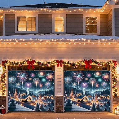 Ano Novo tapeçaria Tampa da porta da garagem Grande pendurado Paisagem Rústico 3D De Festa Exterior Fundos de fotografia Porta de Entrada Decoração de casa