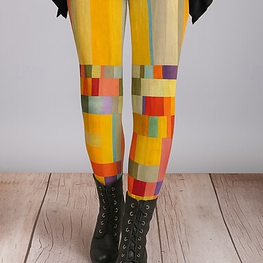 Mulheres Leggings Férias Vintage Moda Mimolet Cintura Alta Gráfico Abstrato Geométrico Estampado Térmico / Quente Macio Respirável Com Stretch Diário Ao ar livre Férias Amarelo Roxo Verde Primavera