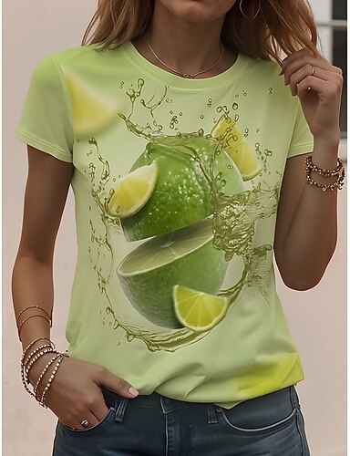 Mulheres Camiseta Imprimir Gráfico Abstrato à moda Clássico Casual Manga Curta Gola Redonda Tops regulares Diário Azul Laranja Verde Verão Primavera
