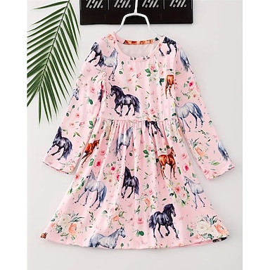 Meninas 3D Gráfico Cavalo Vestido Manga Longa Verão Primavera Férias Diário Feriado Lindo Doce Infantil 4-12 anos Vestido casual Vestido A Line Altura dos Joelhos Normal