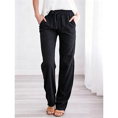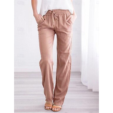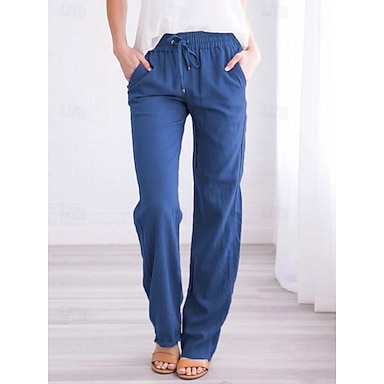 Mulheres Linho de algodão sintético Calça verão Calças Casual Diário Comprimento total Natural Tecido Com Cordão Bolsos laterais Respirabilidade Confortável Sem Elasticidade Para Noite Final de semana
