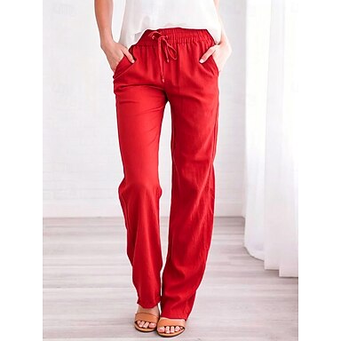 Mulheres Linho de algodão sintético chinês Calça verão Reto Férias Básico Casual Comprimento total Cintura Alta Tecido Bolsos Cintura elástica Confortável Conforto Macio Micro-Elástica Ao ar livre