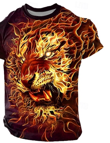 Homens Leão 3D Camiseta Manga Curta Camiseta Impressão 3D Gola Redonda Camisa Exagerado Designer Festa Rua Casual Amarelo Vermelho Roxo Verão Primavera Todas as Estações Roupa S M L XL XXL XXXL
