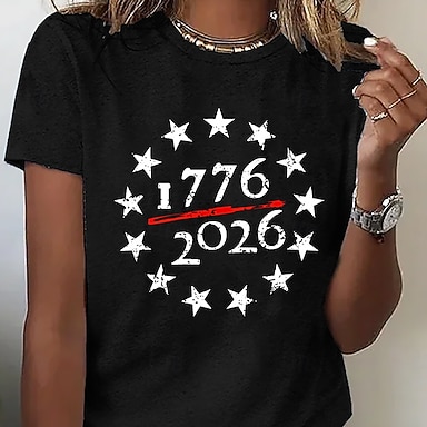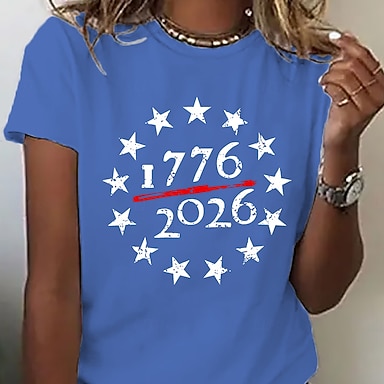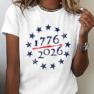 Dia da Independência Americana Mulheres Camiseta Bloco de cor Imprimir Gráfico Bandeira americana Moda à moda Clássico Manga Curta Gola Redonda Tops regulares Casual Diário Azul Branco Vermelho Verão