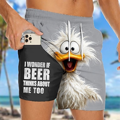 Homens Pato Gíria engraçada animais de desenho animado Shorts Forrados Shorts de Natação 2 em 1 Shorts de Natação Cintura Média Havaiana férias na praia Bolsos laterais Com forro de compressão