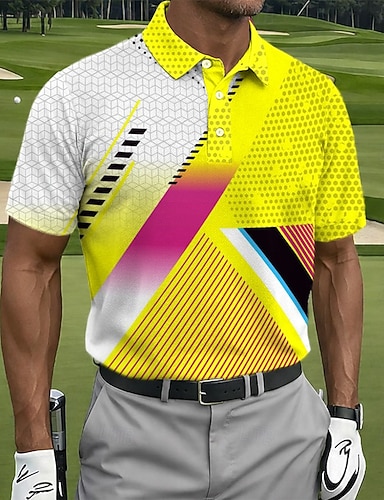 Homens Geométrica Camisas Polo Waffle Camisa de golfe Manga Curta Camisas polo Camisas de colarinho Business casual Roupas de férias Traje formal Roupas para festivais Botões Impressão 3D Amarelo
