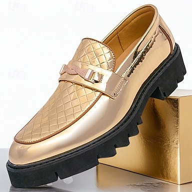 Mocassins dourados com quilt de diamante de Mardi Gras para homens – Sapatos slip-on premium para carnaval eventos formais e celebrações