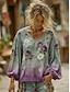 Mulheres camisa Boho Linho de algodão sintético Imprimir Tecido Flor Diário à moda Básico Manga Longa Gola Redonda Tops regulares Diário Trabalho Feriado Azul Roxo Laranja Azul Claro Primavera Outono