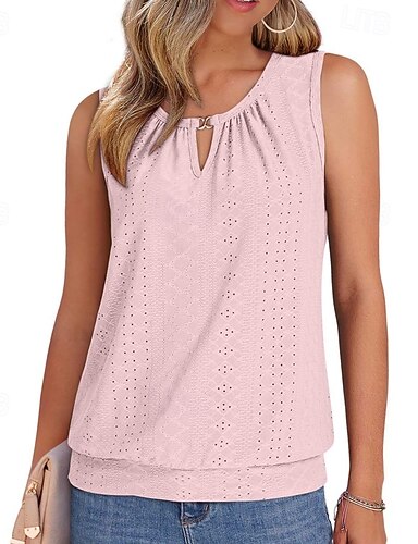Mulheres Malha Íntima camisa sem manga T-shirt Ilhó Côr Sólida Moda Clássico Casual Sem Manga Gola Redonda Tops regulares Diário Para Noite Final de semana Azul Preto Branco Amarelo Rosa Verão