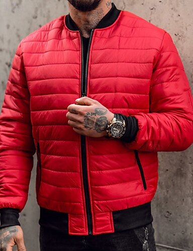 Homens Casaco de inverno Casaco puffer Bolsos Poliéster Férias Roupa Diária Encontro Padrão Moda Casual Confortável Térmico / Quente Outono & inverno Cor Sólida / Simples Preto Vermelho Azul Verde
