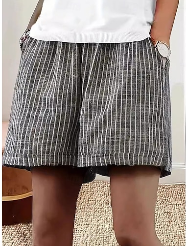 Mulheres Linho de algodão sintético chinês Calção Shorts de verão Moda Roupa de rua Curto Cintura Média Listrado Bolsos Cintura elástica Confortável Macio Micro-Elástica Ao ar livre Rua Rubi Vermelho