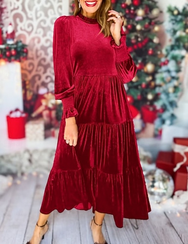 Mulheres Vestido midi Vestido de Natal Moda Moderno Ao ar livre Natal Para Noite Ajuste Largo Tecido Manga Longa Gola Alta Preto Vermelho Azul Marinha Roxo Outono Inverno