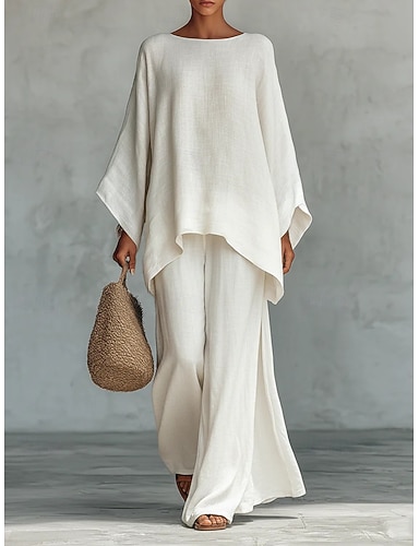 Mulheres Conjuntos de calças Bolero Top Sem Manga Decote Redondo Côr Sólida Imprimir Moda Roupa de rua Casual Diário Ao ar livre Preto Branco Vermelho Verão Ajuste Largo
