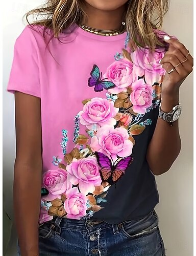 Páscoa Mulheres Camiseta Imprimir Floral Gráfico Plantas Boêmia Havaiana à moda Manga Curta Gola Redonda Tops regulares Diário Rosa Verão Primavera