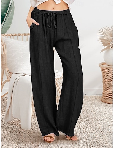 Mulheres Linho de algodão sintético Calças Calça casual Calça verão Férias Moda Básico Comprimento total Cintura Média Tecido Com Cordão Bolsos Conforto Exterior Micro-Elástica Diário Praia Feriado