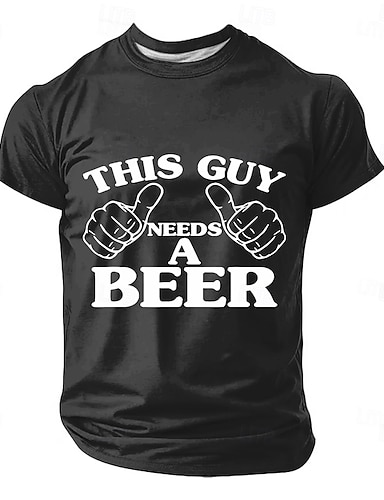 Camiseta masculina "Esse cara precisa de uma cerveja" com dois polegares apontando, divertida e original, ideal para festas, churrascos e como presente. Disponível nos tamanhos P, M, G, GG, XGG e