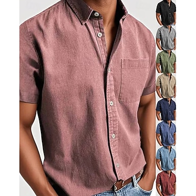Homens Camisa Social camisa de verão Camisa casual camisa de praia camisa de botão Preto Branco Rosa Vermelho Azul Marinha Manga Curta Côr Sólida Lapela Férias Casual Bolsos Roupa Moda Casual