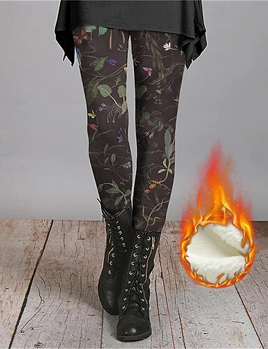 Mulheres Leggings Leggings aconchegantes Férias Moda Roupa de rua Comprimento total Cintura Alta Floral Gráfico Estampado Tosão Térmico / Quente Confortável Com Stretch Ao ar livre Casual / Diário