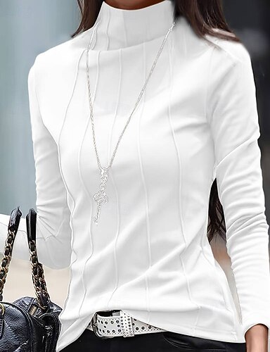 Mulheres Camiseta T-shirt Patchwork Tecido Moda à moda Clássico Manga Longa Gola Alta Tops regulares Diário Final de semana Branco Rosa Verde Escuro Primavera Outono