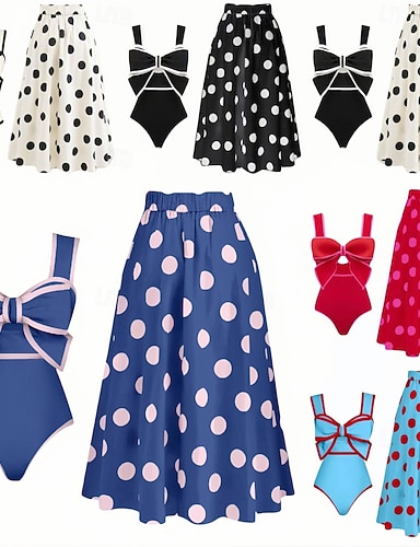 Womens traje de banho inteiro monokini saia controle de barriga cintura alta slim costas nus férias vestuário de praia bolinhas decote em V sem mangas