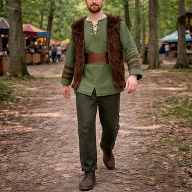 Medieval Renascentista chique Calças Colete Camisa Arqueiro Ranger Decote V Fantasia Homens Fantasia Dia Das Bruxas Carnaval feira renascentista LARP Adulto Colete Camisa Calças Todas as Estações