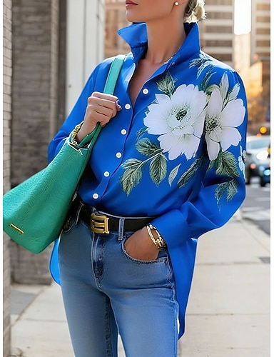 Mulheres Camisa Social Botões Imprimir Floral Gráfico Elegante à moda Básico Manga Longa Colarinho de Camisa Tops regulares Diário Trabalho Azul Preto Vermelho Roxo Marron Primavera Outono Inverno