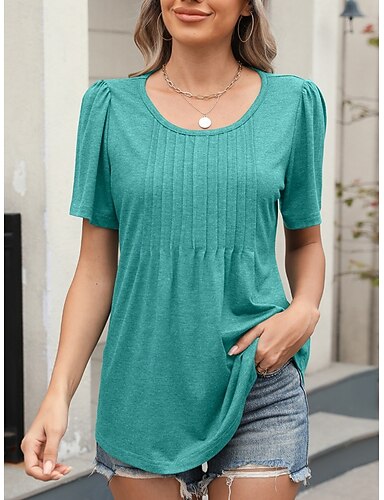 Mulheres Camiseta T-shirt Franzido Tecido Moda à moda Clássico Manga Curta Gola Redonda Tops regulares Diário Para Noite Final de semana Preto Branco Verde Claro Rosa Vinho Verão Primavera