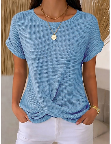 Mulheres Blusa Côr Sólida Vintage à moda Básico Manga Curta Gola Redonda Tops regulares Diário Azul Preto Branco Rosa Vermelho Verão Primavera