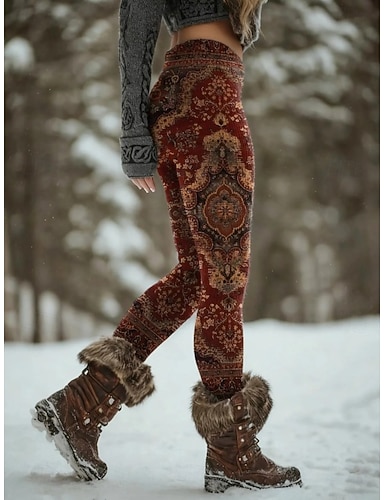 Mulheres Leggings Férias Vintage Estilo Étnico Comprimento total Cintura Alta Gráfico Geométrica Estampado Cashemere Impressão 3D Secagem Rápida Respirabilidade Macio Com Stretch Inverno Azul