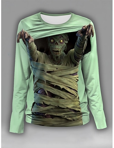 Camiseta Feminina Esqueleto Caveiras Impressão Gráfica Esqueleto Moda Vintage Estilosa Manga Longa Gola Redonda Tops Regulares Impressão Diária Fim de Semana Amarelo Rosa Roxo Verde Verão Primavera