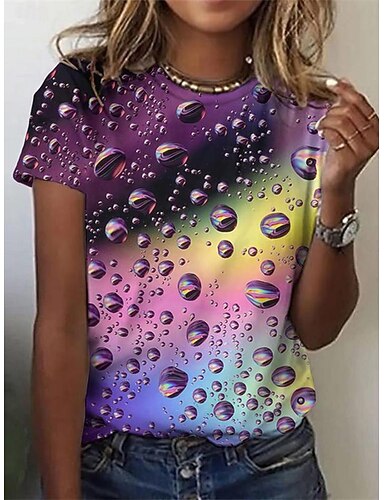 Mulheres Camiseta Imprimir Gráfico Geométrica Vintage à moda Casual Manga Curta Gola Redonda Decote Redondo Tops regulares Casual Diário Azul Rosa Roxo Laranja Verão Primavera