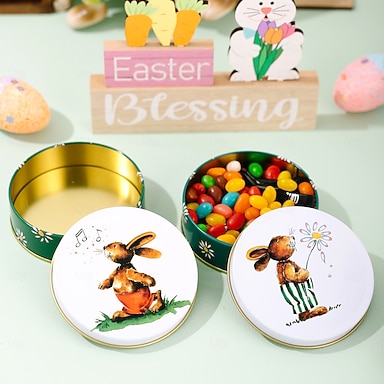 Conjunto de 2 caixas de lata em formato de coelho de desenho animado para a Páscoa, recipiente criativo de metal para armazenar doces e biscoitos, caixa de presente com coelho para decoração de