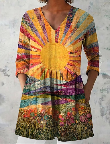 Mulheres Minivestido vestido de praia Vestido A Line Vestido floral Elegante Moda Moderno Diário Ao ar livre Férias Normal Geométrica Manga Curta Decote V Azul Vermelho Azul Real Laranja Verão