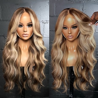 Cabelo brasileiro cru remy ondulado com mechas loiras acinzentadas sem cola 5x5 fechamento de renda sem cola perucas coloridas 13x4 peruca frontal de renda pré-arrancada para mulheres