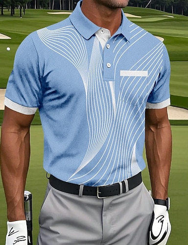 Homens Geométrico Linha Pólo Camisas Polo Esportivas Manga Curta Camisas polo Camisas de colarinho Roupa de Esporte Casual Ao ar livre Roupa Esportiva Roupa Diária Bolsos Impressão 3D Botões Verão