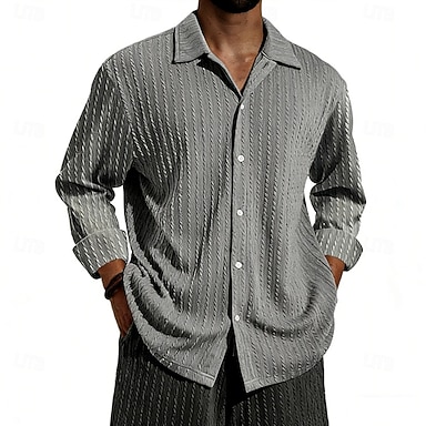Homens Camisa Social Camisa casual camisa de botão Camisa Jacquard Branco Manga Longa Tecido Colarinho de Camisa Casual Diário Cordões Roupa Elegante Moda Moderno Casual