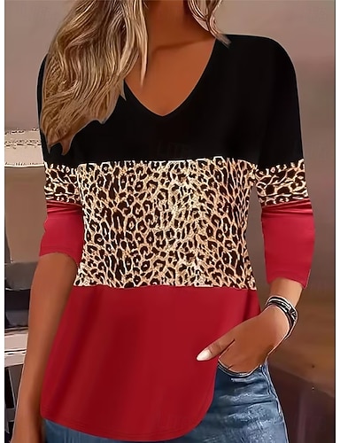 Mulheres Camiseta Imprimir Gráfico Geométrica Moda à moda Clássico Manga Longa Gola Redonda Decote Redondo Tops regulares Diário Final de semana Rosa Vermelho Laranja Verão Primavera Outono